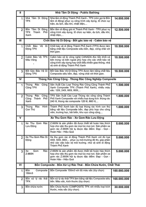 Công Ty Cổ Phần Sản Xuất Đầu Tư Xây Dựng Thành Phố Xanh – TPX địa chỉ chuyên cung cấp – thiết kế - thi công – sửa chữa và báo giá các dịch vụ về mua bán, cho thuê nhà vệ sinh (di động, công cộng, lưu động,…), nhà tắm di động, thùng rác công cộng, xe gom rác lưu động, chốt bảo vệ, các sản phẩm làm từ Composite,…theo yêu cầu giá rẻ, chất lượng, chuyên nghiệp và có tiếng nhất tại TPHCM cũng như các tỉnh, thành trong cả nước.